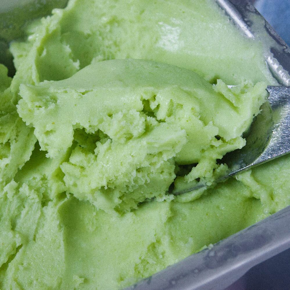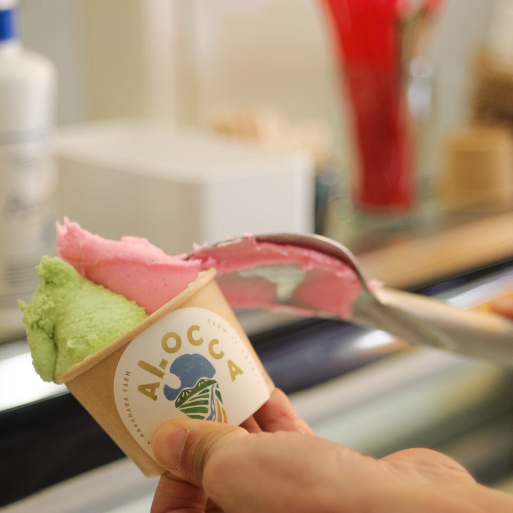 青々と広がる畑の風景をジェラートに。アーモンドの香ばしさと、キャラメリゼケールのザクザク。