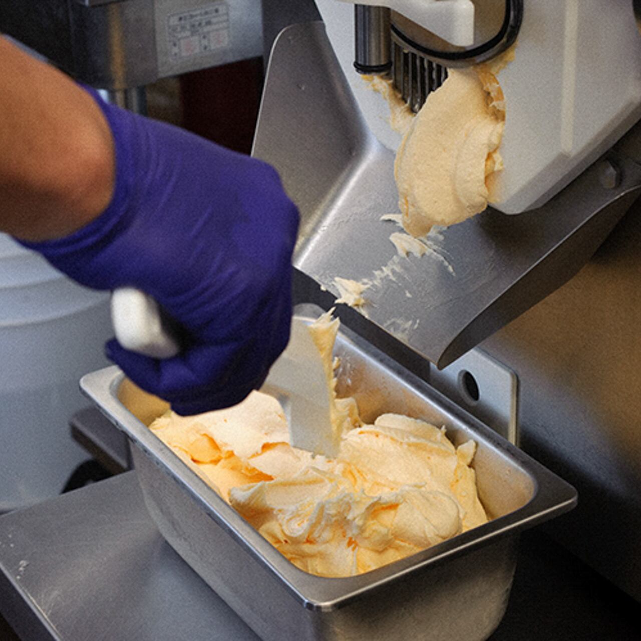 3〜4週間じっくりと高温で熟成し、まるでドライフルーツのようなねっとりフルーティな黒にんにくをミルクと合わせて、仕上げに自家製キャラメルをまぜこみました。時間が作り上げたインパクトある濃厚な味わい。